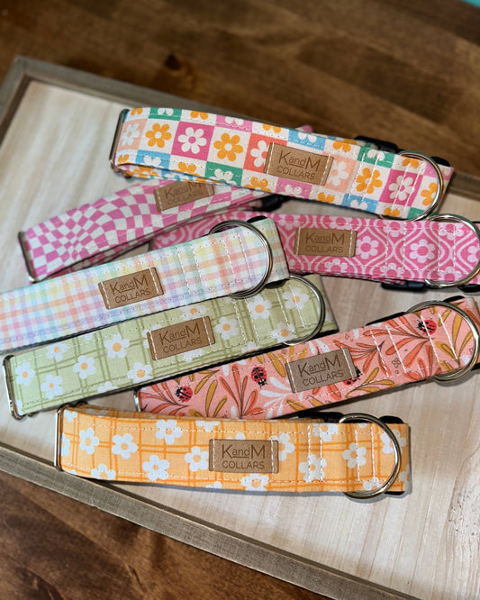 Summer Checkerboard Flowers Dog Collar, K and M Collars